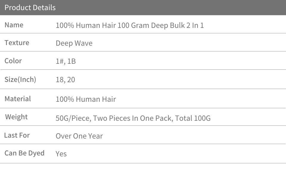 KD2304H 100% HUMAN HAIR 100 GRAM DEEP BULK 2 IN 1