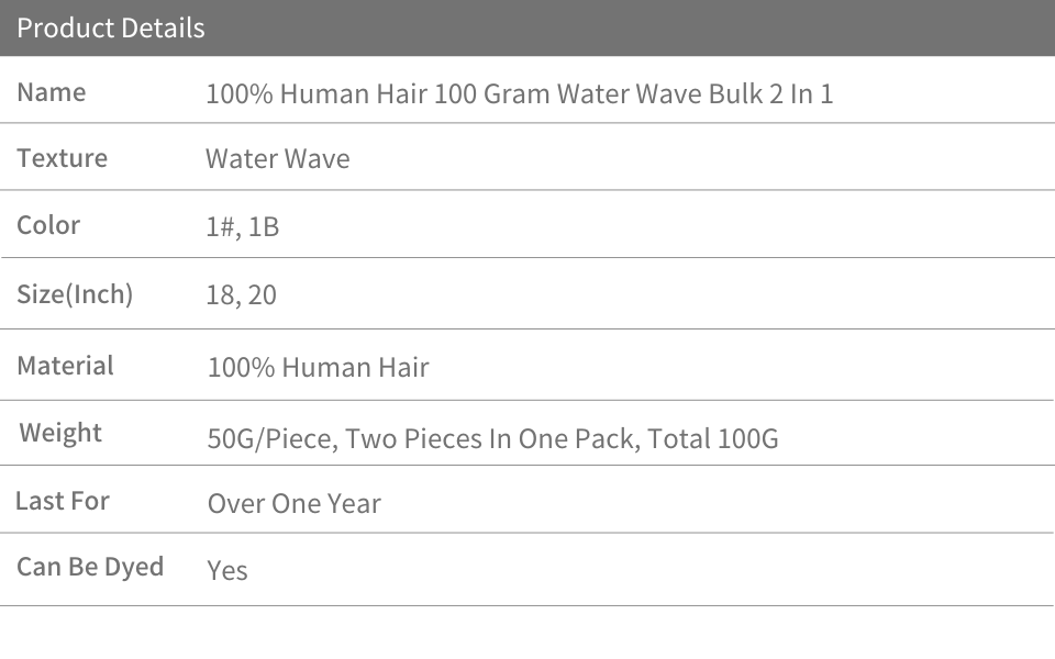 KW2304H 100% HUMAN HAIR 100 GRAM WATER WAVE BULK 2 IN 1