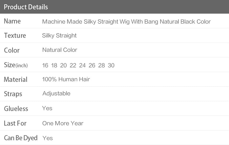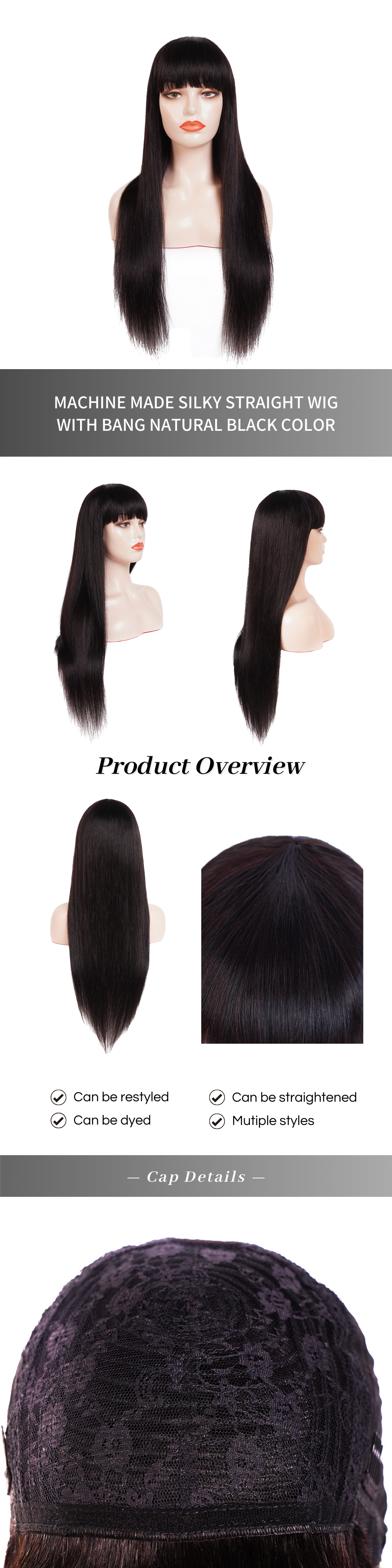 MACHINE MADE SILKY STRAIGHT WIG WITH BANG NATURAL BLACK COLOR